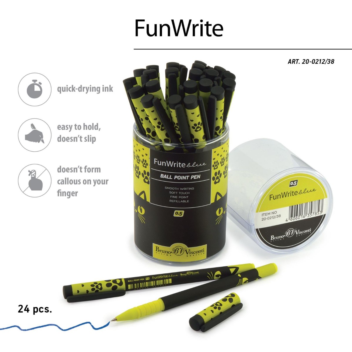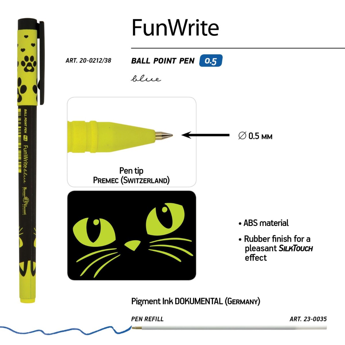Ручка шариковая синяя BV FunWrite Черный кот 0.5мм принт