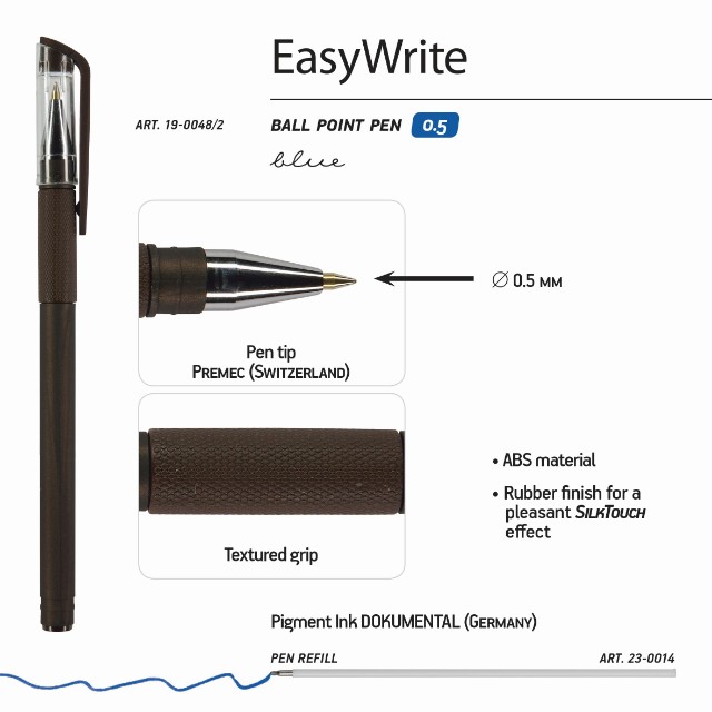 Ручка шариковая синяя BV EasyWrite original корич/серый под персонализацию