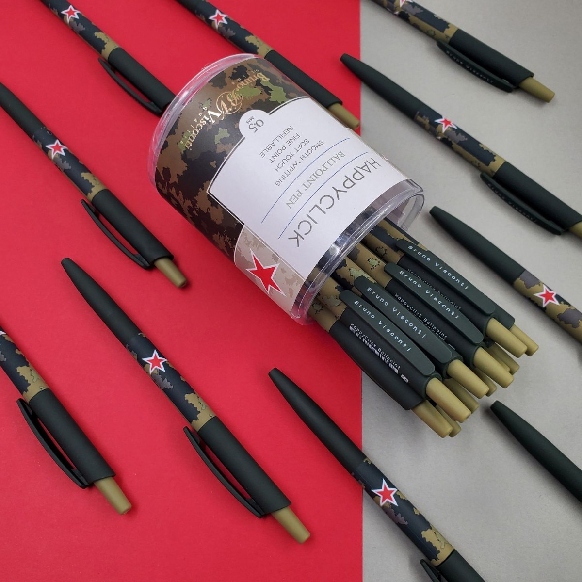 Ручка шариковая синяя BV HappyClick Милитари 0.5