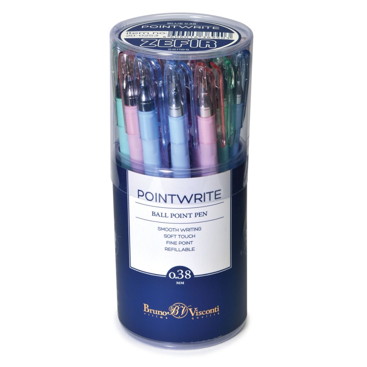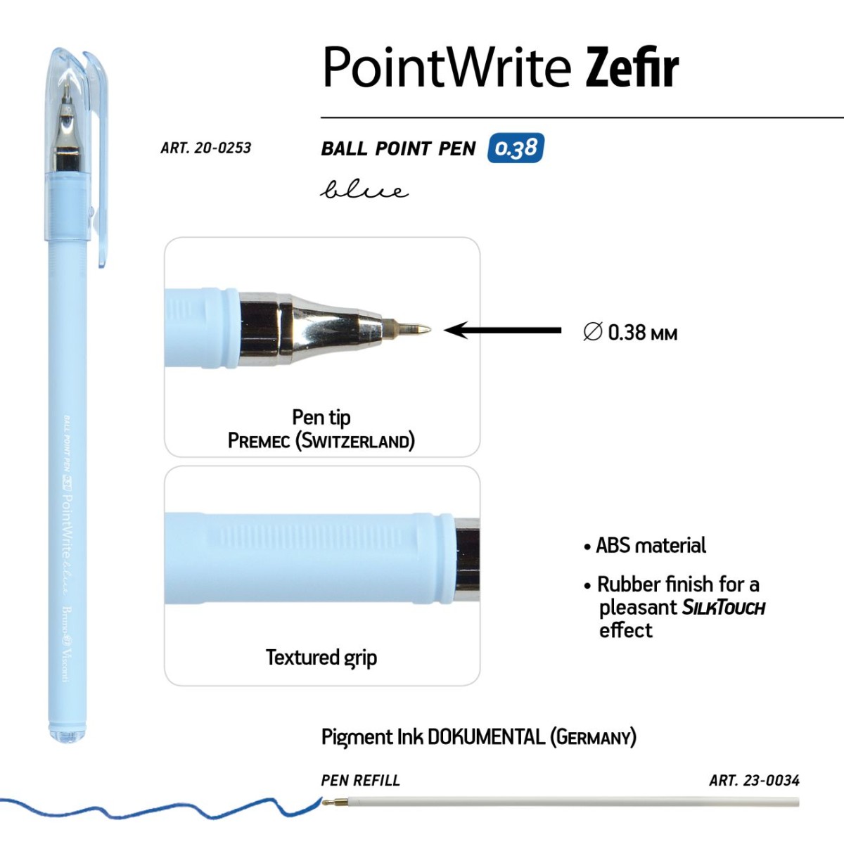 Ручка шариковая синяя BV PointWrite Zefir 0.38 корпус пастель