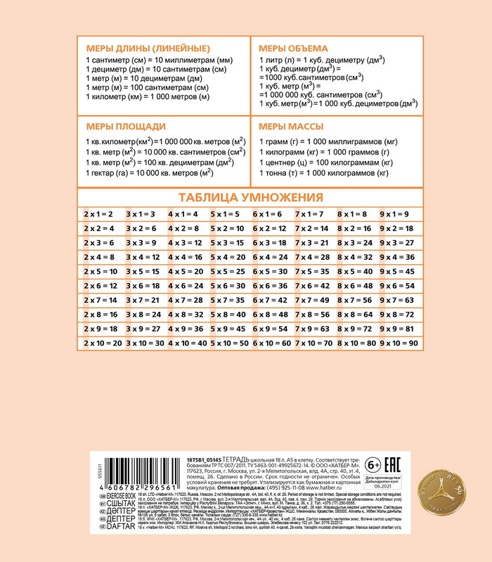 Тетрадь 18л клетка Однотонная. Пастель Персиковая скругл