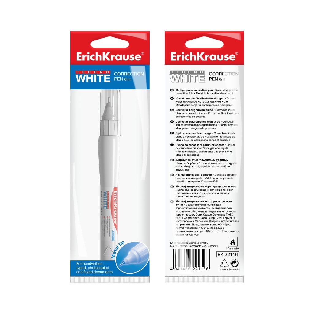 Штрих-ручка 6мл Techno white