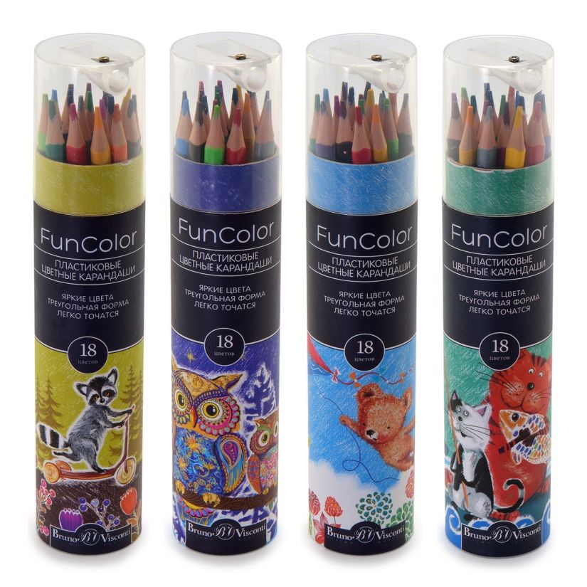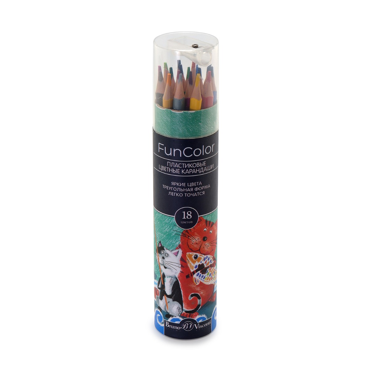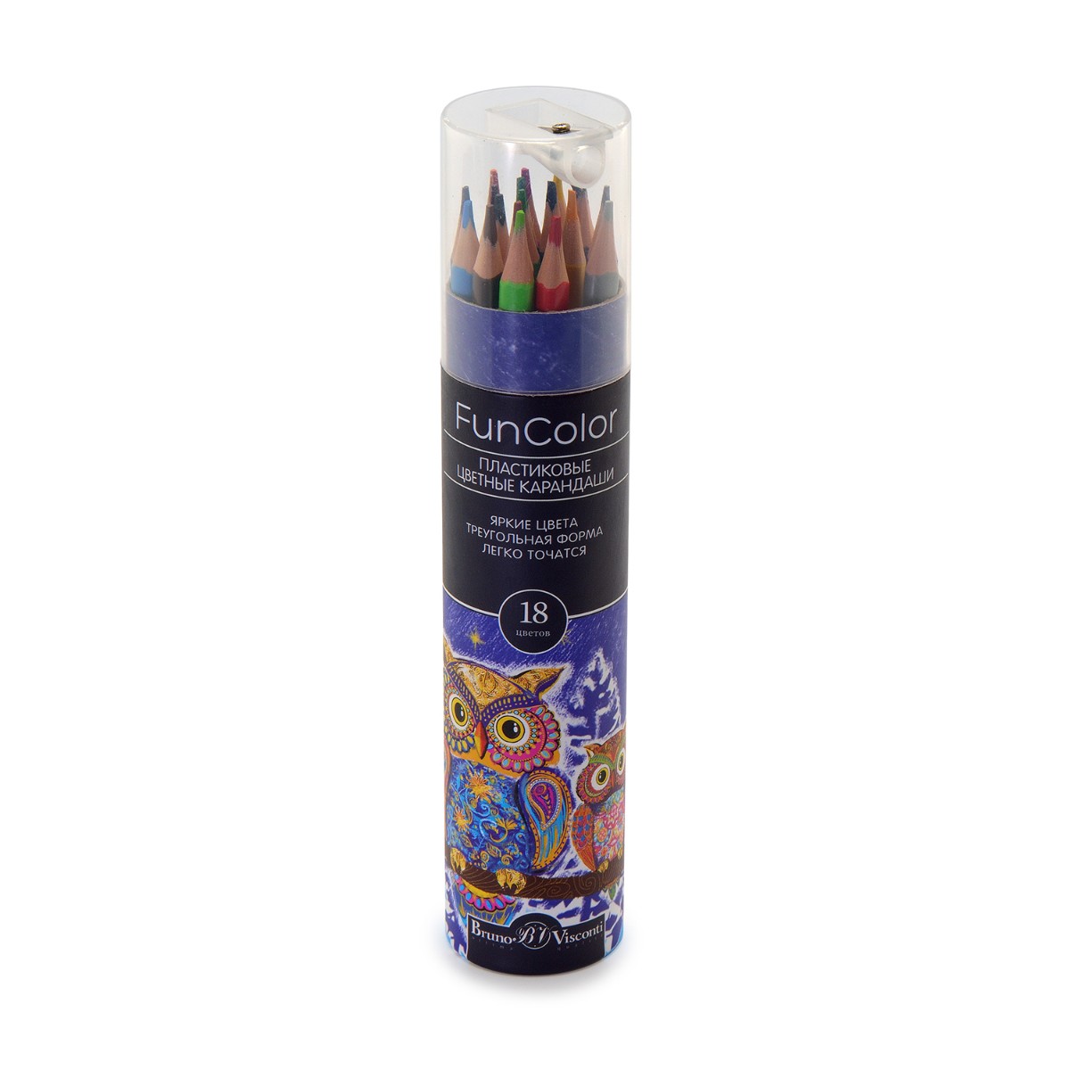 Карандаши цветные 18 цв пластик BV FunColor в тубе