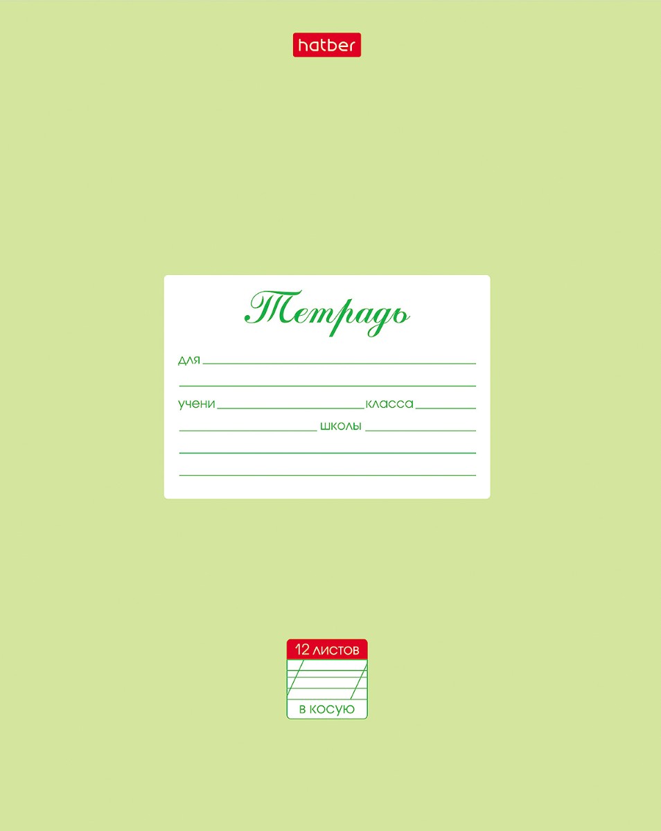Тетрадь 12л линейка косая Однотонная. Пастель Салатовая с доп гориз. линией