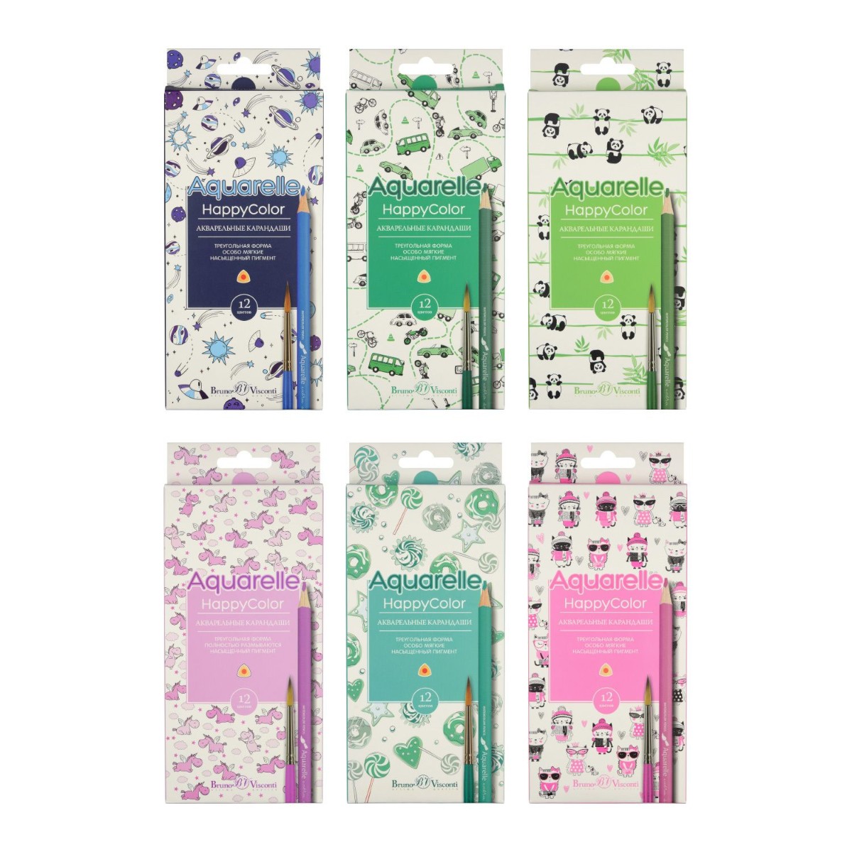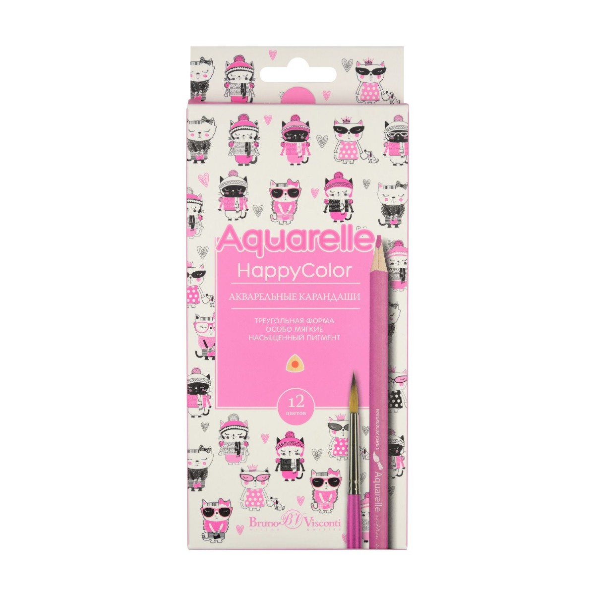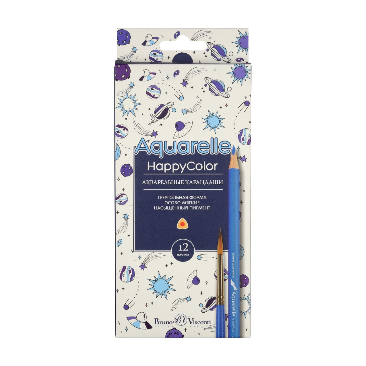 Карандаши цветные 12 цв акварел BV HappyColor к/к